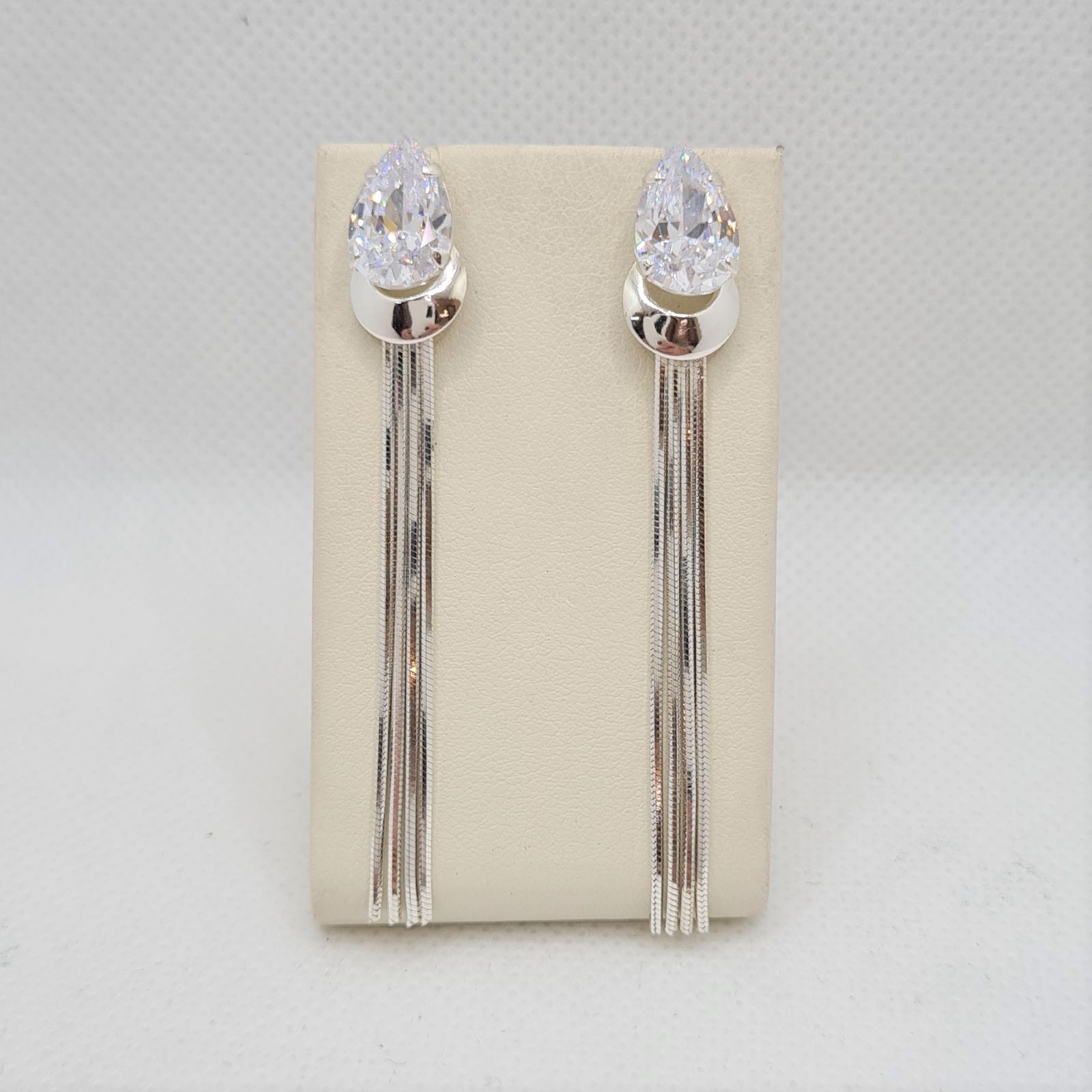 Eleganckie srebrne kolczyki z dużą cyrkonią w kształcie łezki, zapinane na sztyft. Idealne na wyjątkowe wyjścia, na ślub.