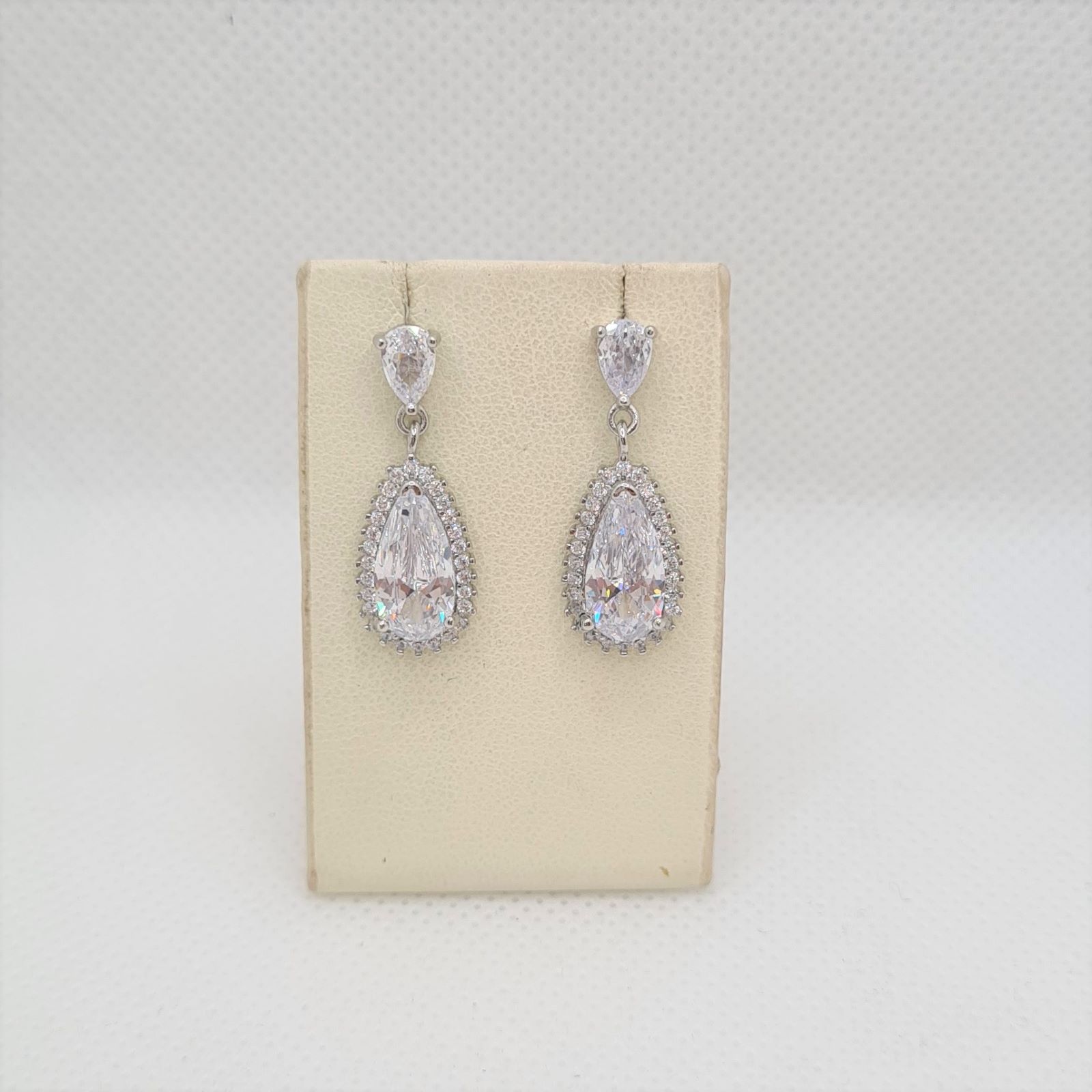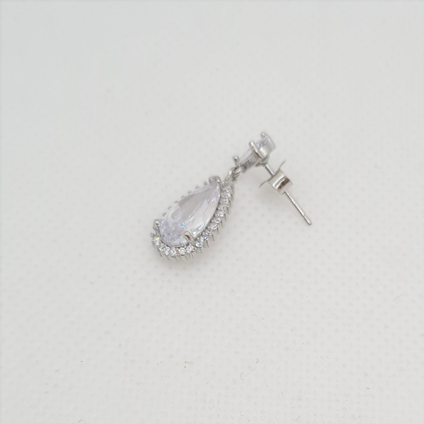 Eleganckie srebrne kolczyki zdobione cyrkoniami. Kolczyki wiszące, zapinane na sztyft. Idealne na ślub i inne eleganckie okazje.