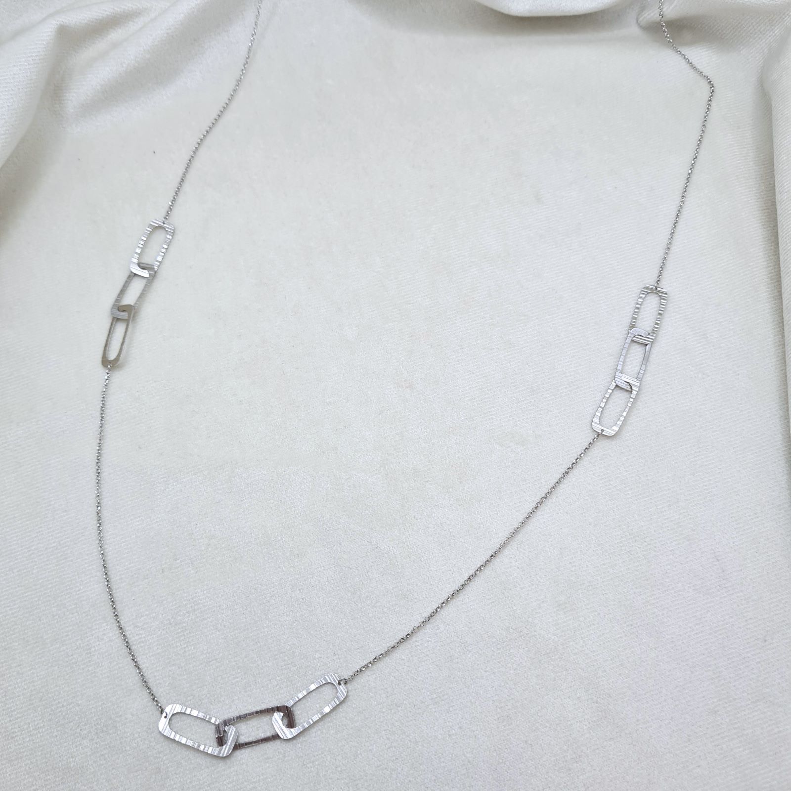 Srebrny naszyjnik długi z ozdobnymi dużymi ogniwami, doskonale prezentuje się na bluzeczce, sweterku. Splot łańcuszka to ankier, naszyjnik posiada przedłużkę, która pozwala na regulację jego długości. Idealnie nadaje się do noszenia na różne okazje. Do kompletu można dokupić bransoletkę i kolczyki.